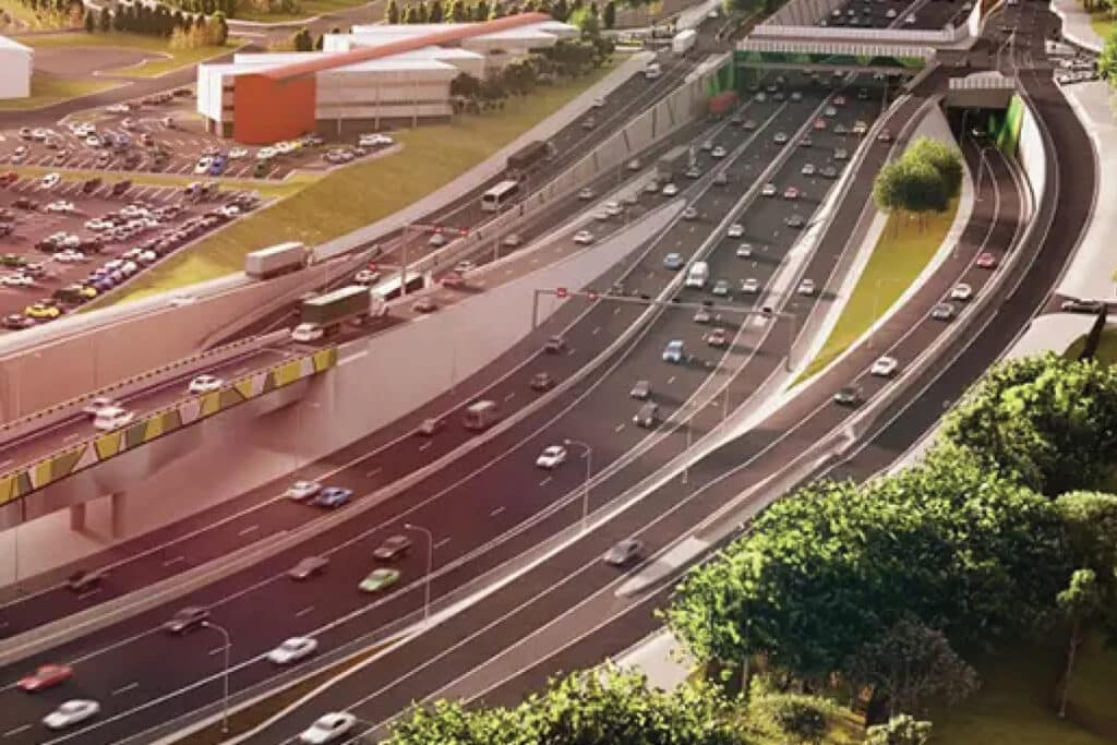 Connecting the roads together via free-flowing ramps meant that each 4-lane approach would need to be converted to free flowing 2-lane ramps. Requiring some vehicles to enter the motorway in an undesirable lane and required to make multiple lane changes before the diverge less than 1km down the corridor, sub-optimal for a motorway solution. To provide confidence in the analysis, Addinsight trip data was used to quantify the origins and destinations. A sub-area origin-destination trips report was used to capture the magnitude of movements between the various locations in the area. The data showed numerous movements that conflict including many relate to non-motorway movements that cross over the corridor rather than travel along it. A Furness operation (OD matrix manipulation Aimsun) was applied to scale up the trips to be equivalent to the actual traffic volumes to accurately quantify the weave movements.